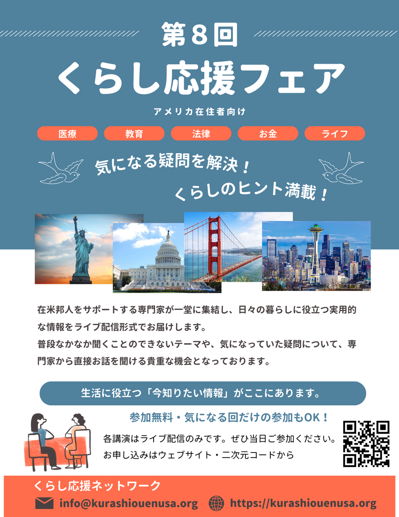 En esta feria, expertos de diversas industrias que apoyan a los japoneses que viven en EE. UU. se reunirán para brindar información práctica útil en la vida diaria en un formato de transmisión en vivo.